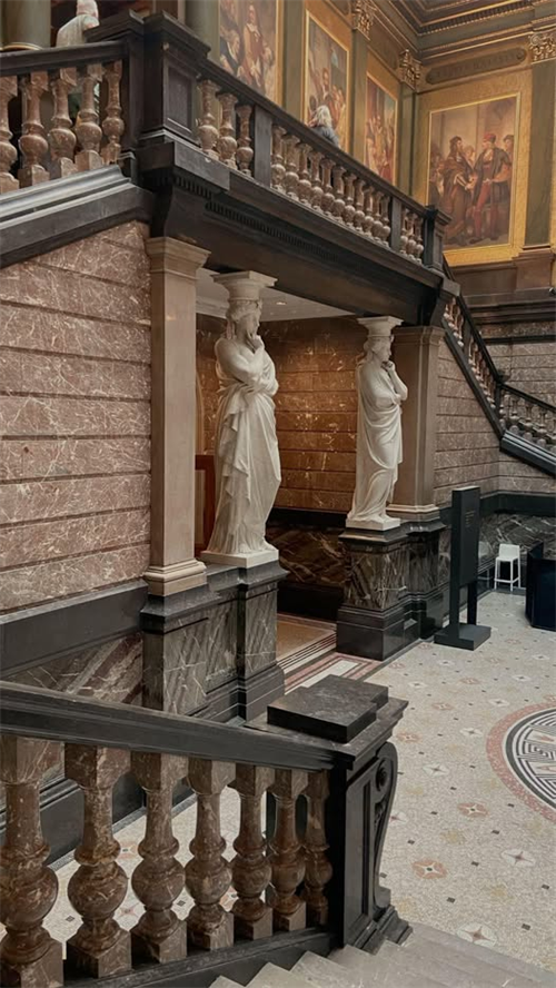 Penemuan Kuno - Kehadiran patung -patung Cariatides dan gaya seni bina keseluruhan sangat mencadangkan ini adalah tapak Eropah, mungkin di sebuah bandar besar dengan muzium seni atau sejarah yang penting.